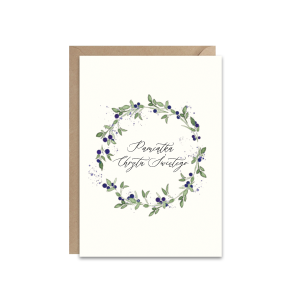Piękna kartka z wiankiem jagodowym i napisem Pamiątka Chrztu Świętego - doskonała dla chłopca i dziewczynki jako wspomnienie tego ważnego dnia.
