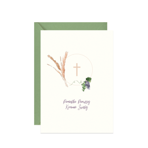 Pamiątka Pierwszej Komunii Świętej - kartka z reprodukcją ręcznie malowanej akwareli, drukowana na papierze z recyklingu doskonała na serdeczne życzenia.