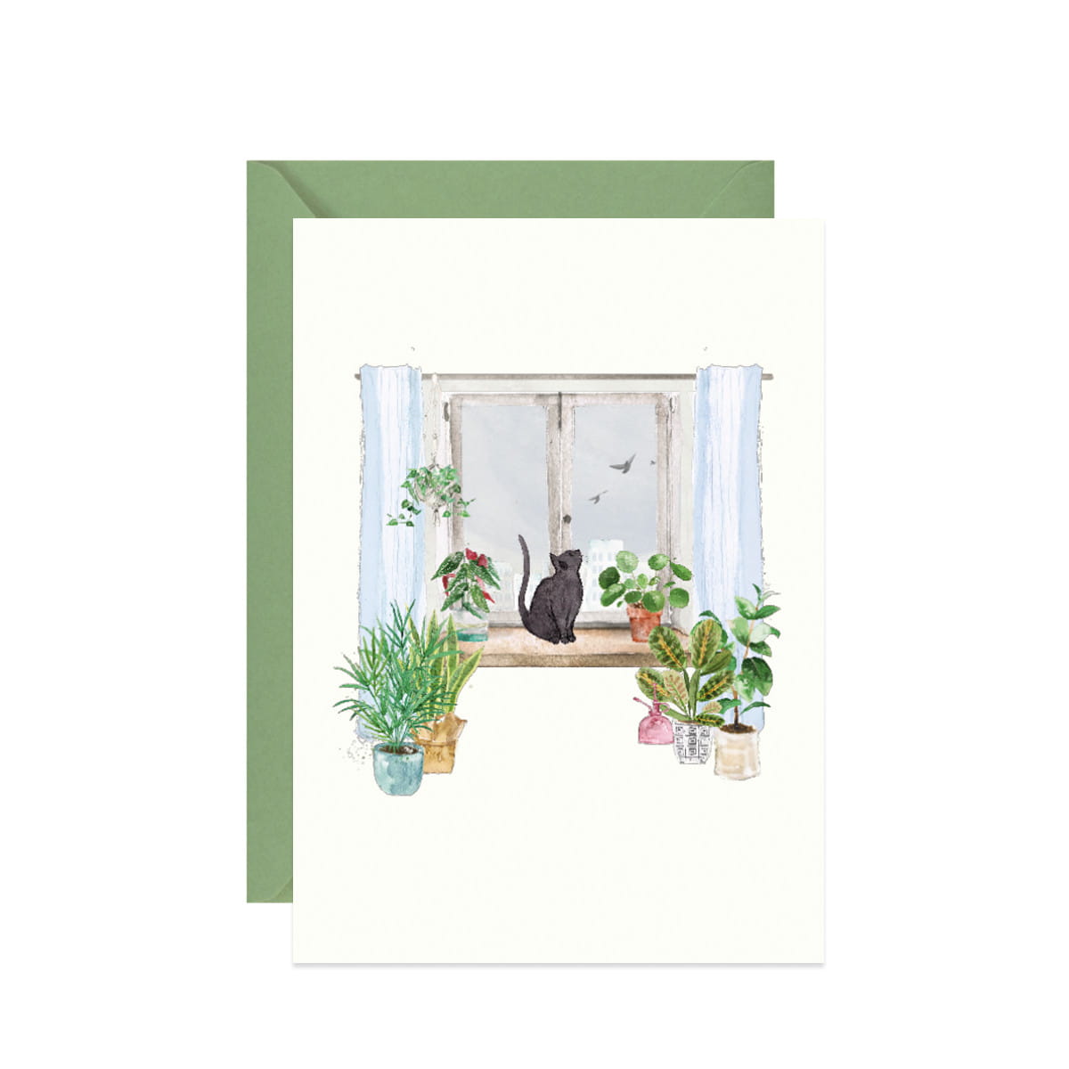 Kartka roślinna Zielony parapet z doniczkami