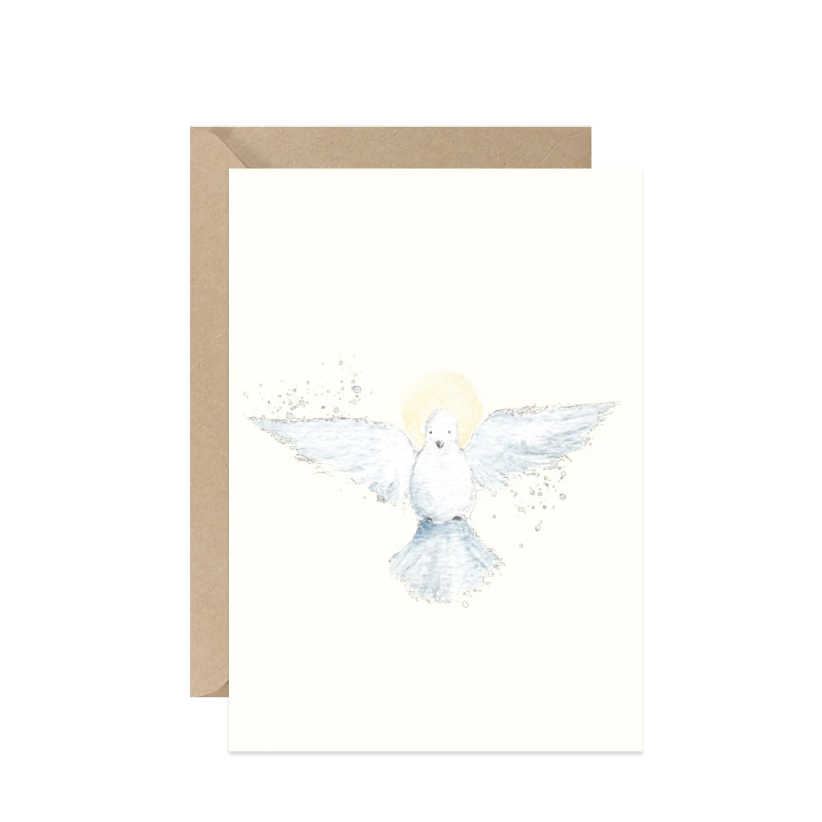 Piękna kartka z akwarelową ilustracją Ducha Świętego - doskonała jako pamiątka Chrztu Świętego, Pierwszej Komunii Świętej czy Bierzmowania.