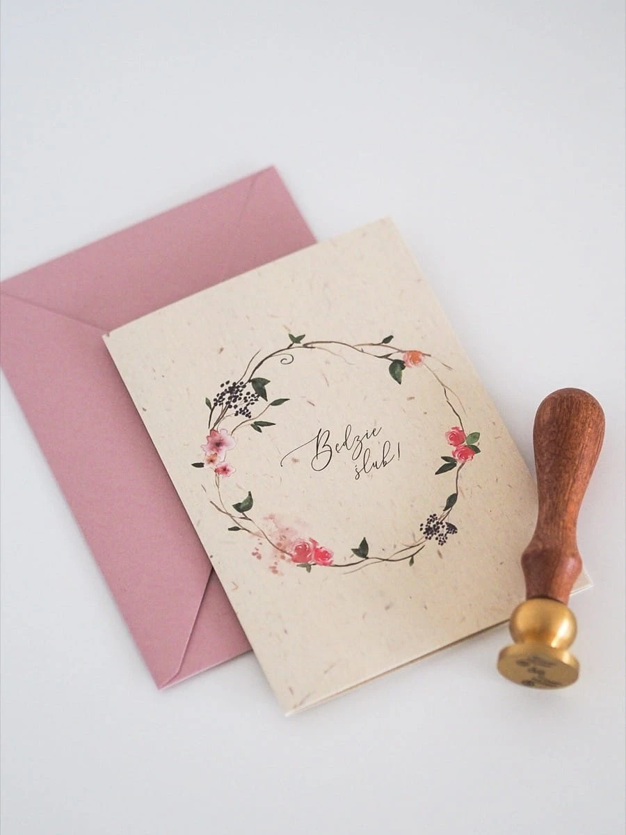 Zestaw 5 zaproszeń na ślub do wypisania ręcznie - różowy wianek